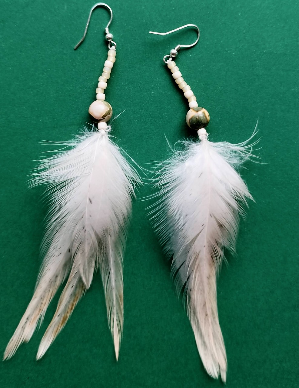 Pírka kohouta, Doplněno jaspisem, korálky, stříbrné háčky